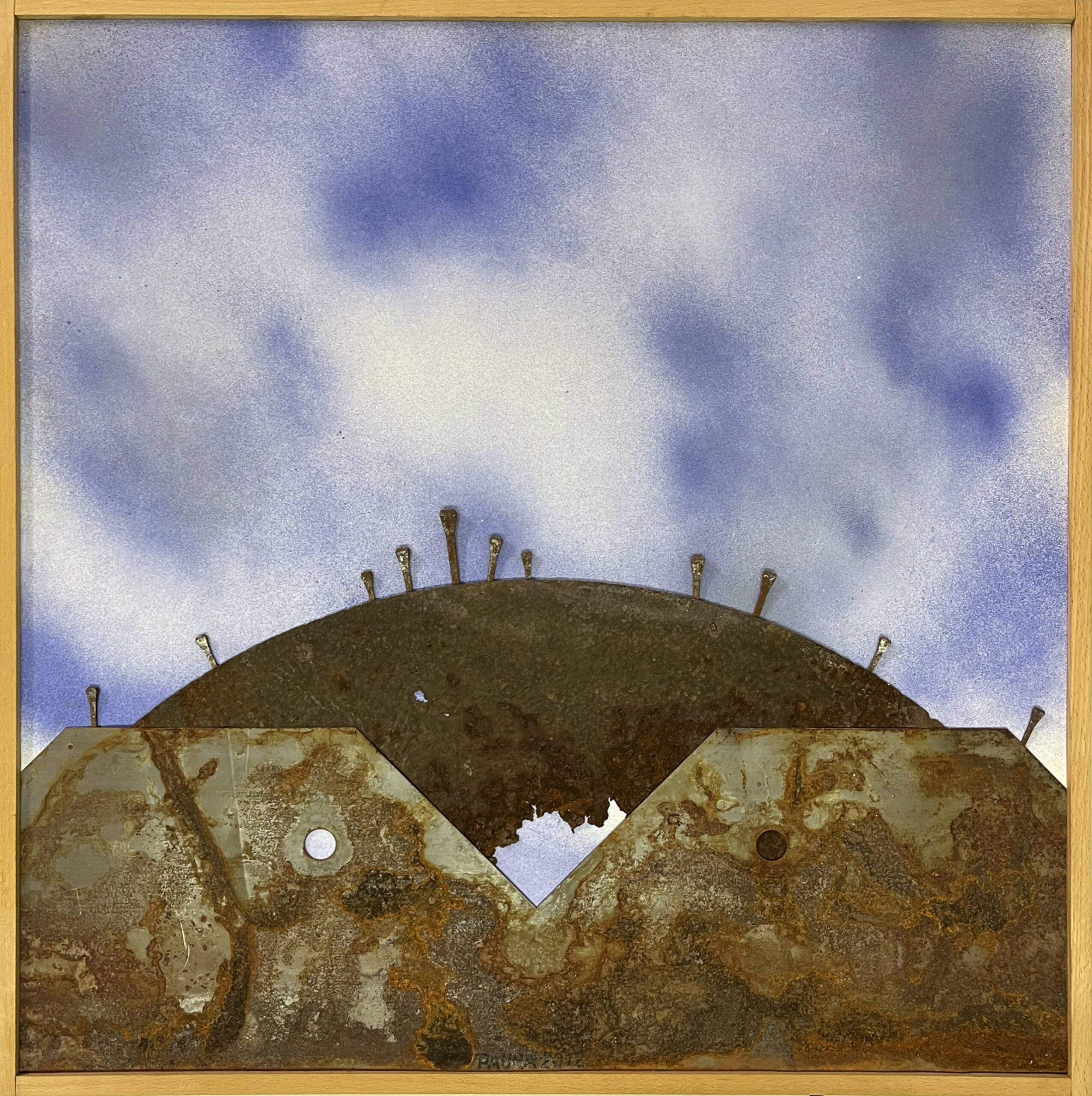 LandschaftsentwurfMetallfragmente auf rostigem Blech2018Format: 50 x 50 x 2,2 cm
